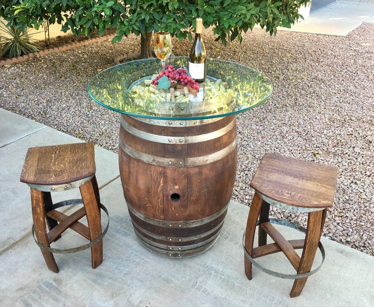 Our "ONE OF A KIND" pieces are made by hand with real solid oak wine barrels.